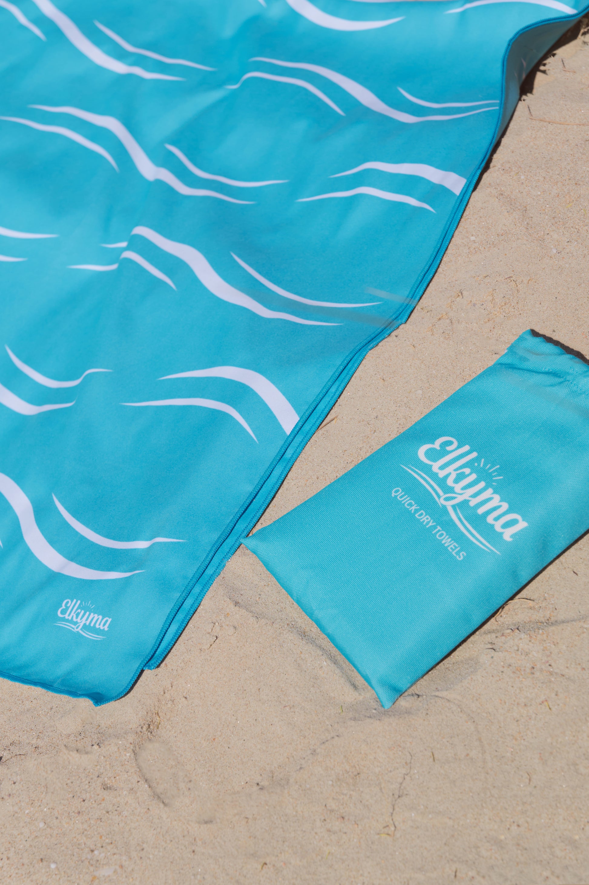 Feel the magic of the sea with the “Aqualicious” quick dry towel. This signature piece along with the white waves pattern is your ticket to playful days at the beach!