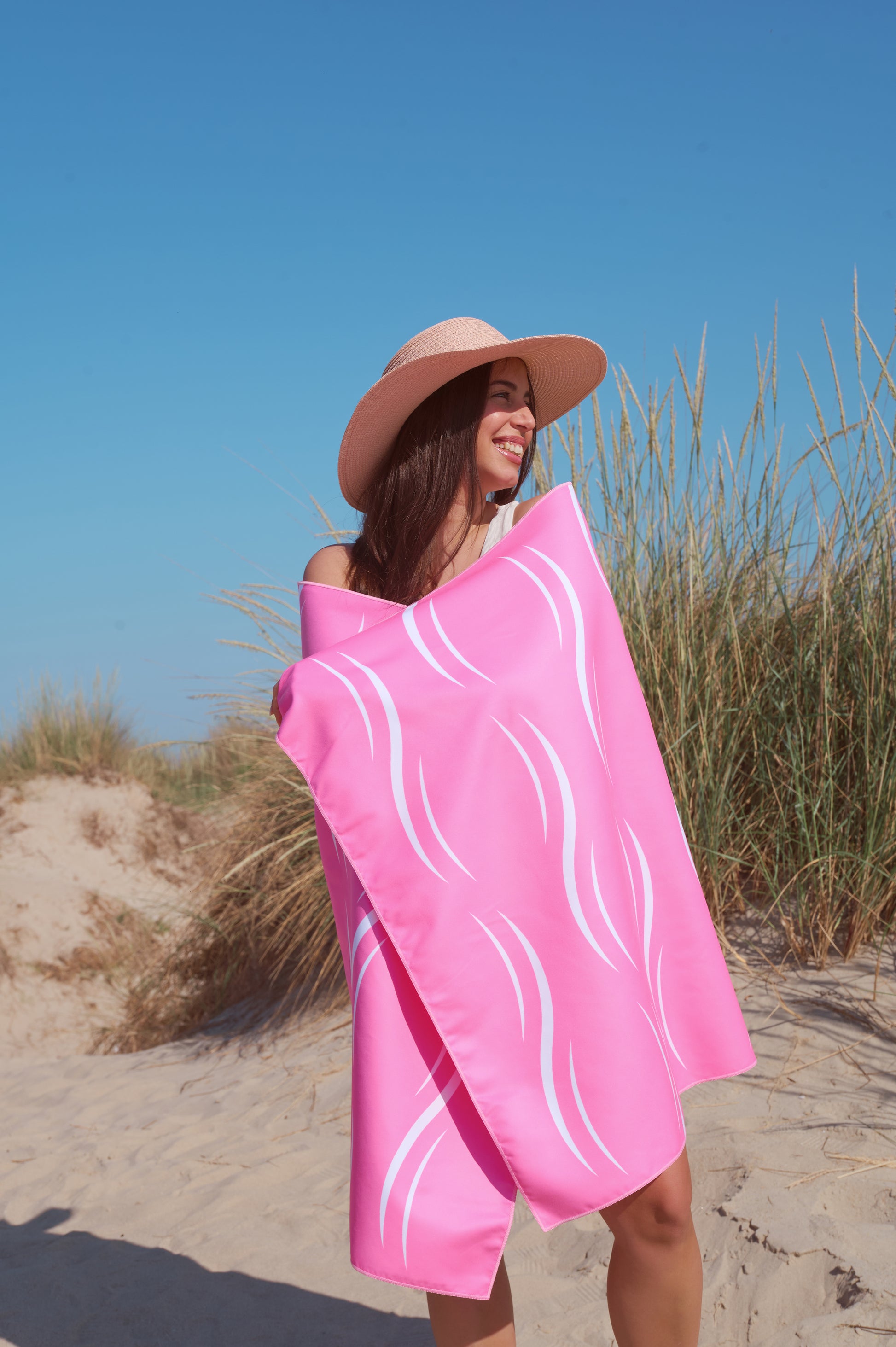 Tick, tock! Feel the fun explosion with our "Pink Bomb" quick dry towel. This dreamy towel, sprinkled with playful white waves, can turn every beach day to sugar-coated adventure!